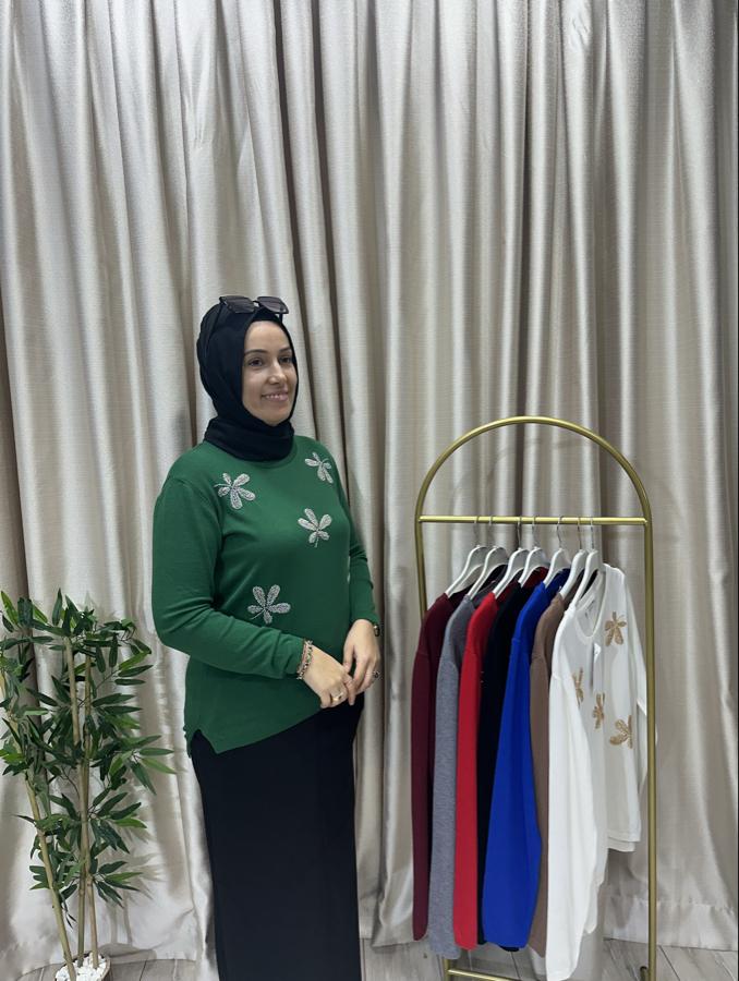 Çiçek taşlı kaşmir kazak