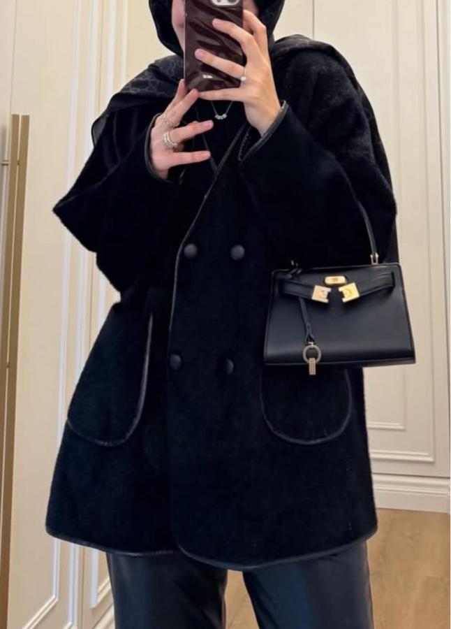 Deri kenarlı Angora çeket