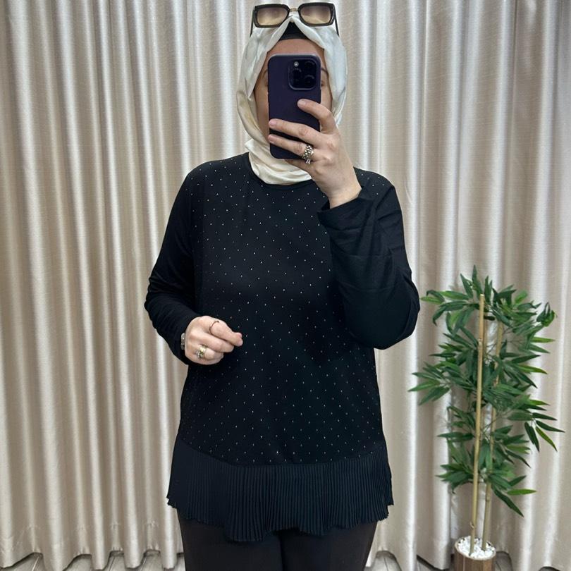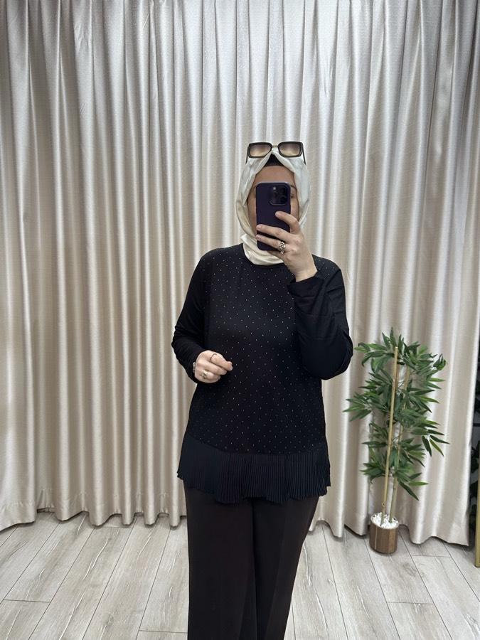Taşlı penye bluz